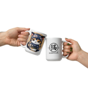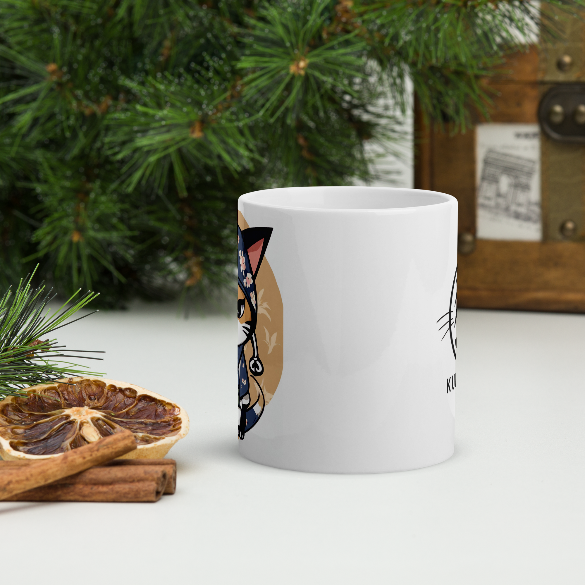 A cute mug featuring a white-themed design with a ninja cat motif. It not only enhances your tea or coffee enjoyment but also adds a decorative touch to your room. The handle is designed to resemble a ninja weapon, providing a little fun twist while you enjoy your drink. It's a perfect item to add a bit of entertainment to your daily life.