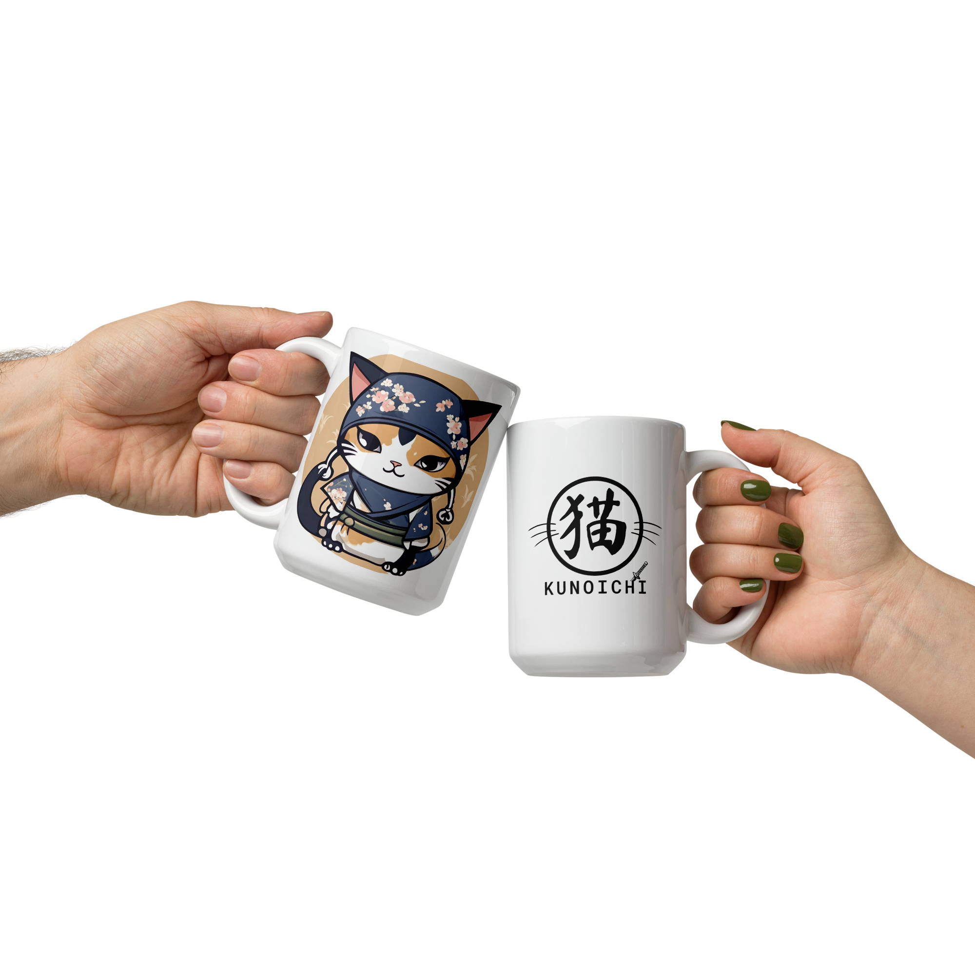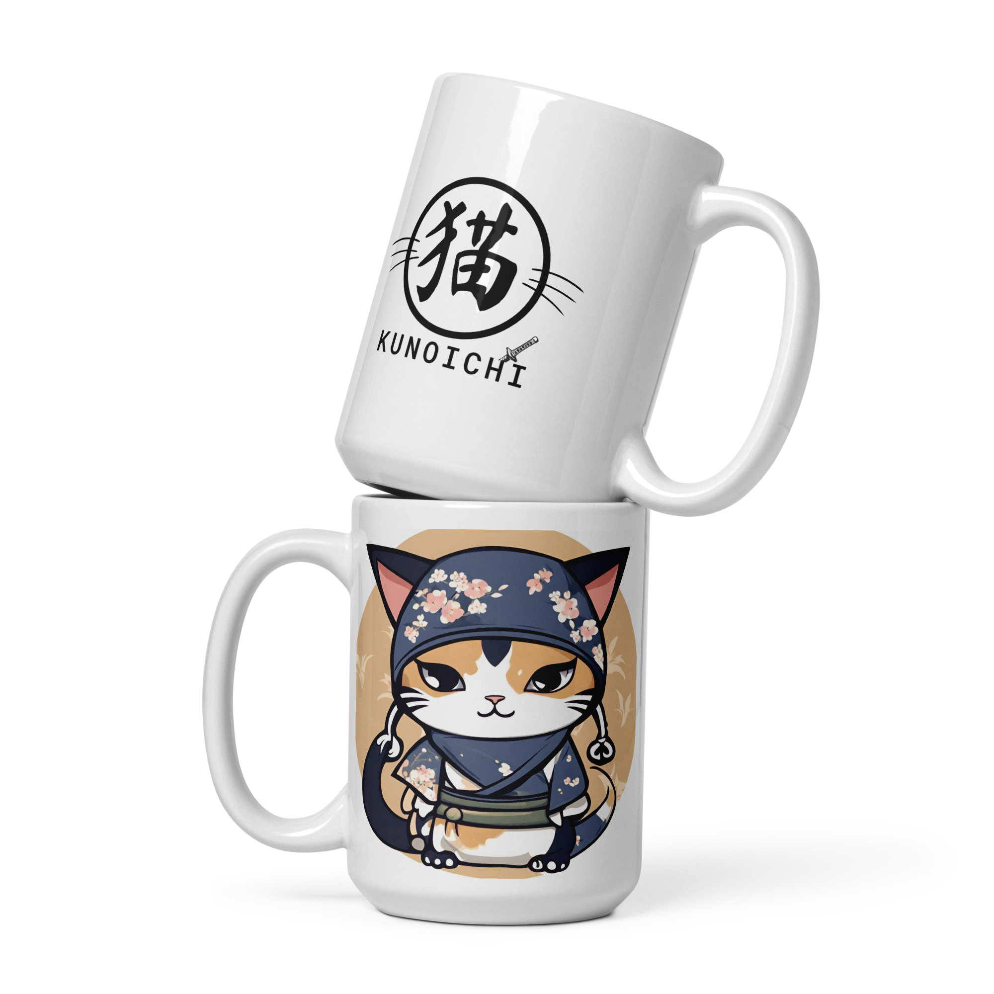 白を基調とした猫のくノ一をモチーフにした可愛らしいマグカップ。