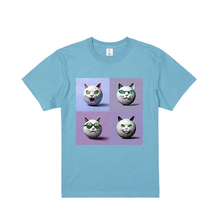 【メンズ】 猫Tシャツ おもしろTシャツ 猫ゴルフボールTシャツ(アクアブルー) 【Men's】 Cat Golf Ball T-shirt (Aqua Blue)