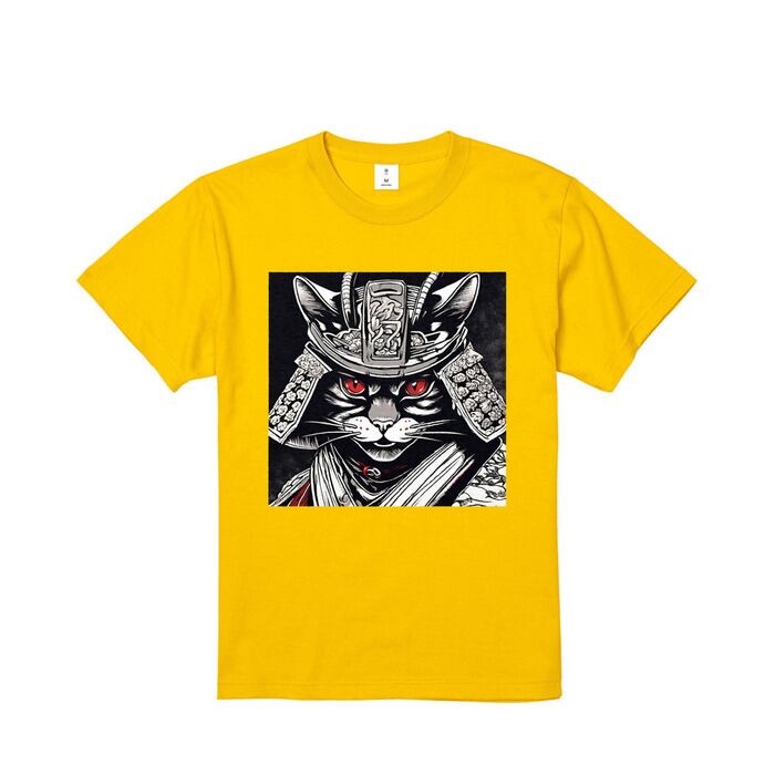 【メンズ】 猫Tシャツ おもしろTシャツ 猫侍Tシャツ(カナリアイエロー) Men's】Cat Samurai T-shirt (Canary Yellow) 猫Tシャツ 猫グッズ