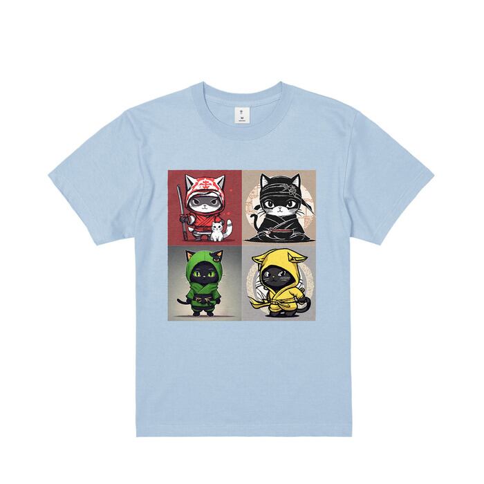 【メンズ】 猫Tシャツ おもしろTシャツ 猫忍Tシャツ(ライトブルー) 【Men's】 Cat Ninja T-shirtt (Light Blue) 猫Tシャツ 猫グッズ