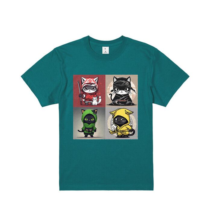 This is an original design T-shirt from Neko Maneki. It features a print of a cat ninja character on the front chest. The design of a cat ninja, simple yet playful, adds a unique touch and is recommended for those who want to stand out from the crowd.