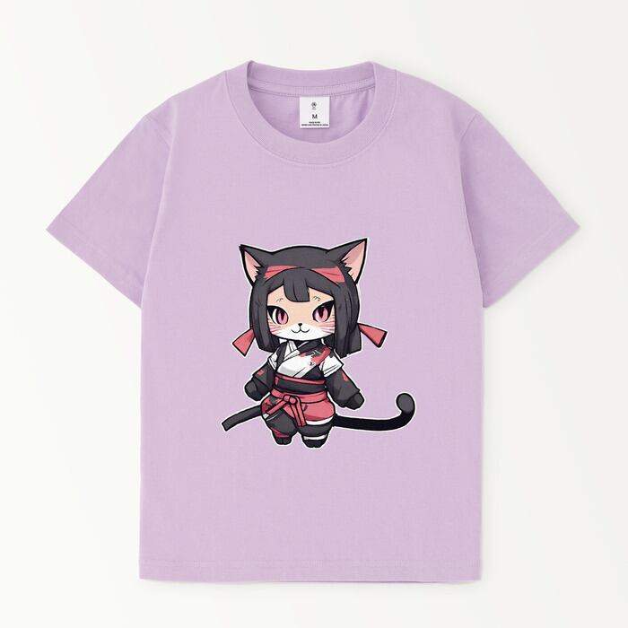 【キッズ】 猫Tシャツ おもしろTシャツ オリジナル猫忍くノ一Tシャツ(パステルパープル)1 【Kids】 Original Ninja Cat Kunoichi T-shirt(Pastel Purple)