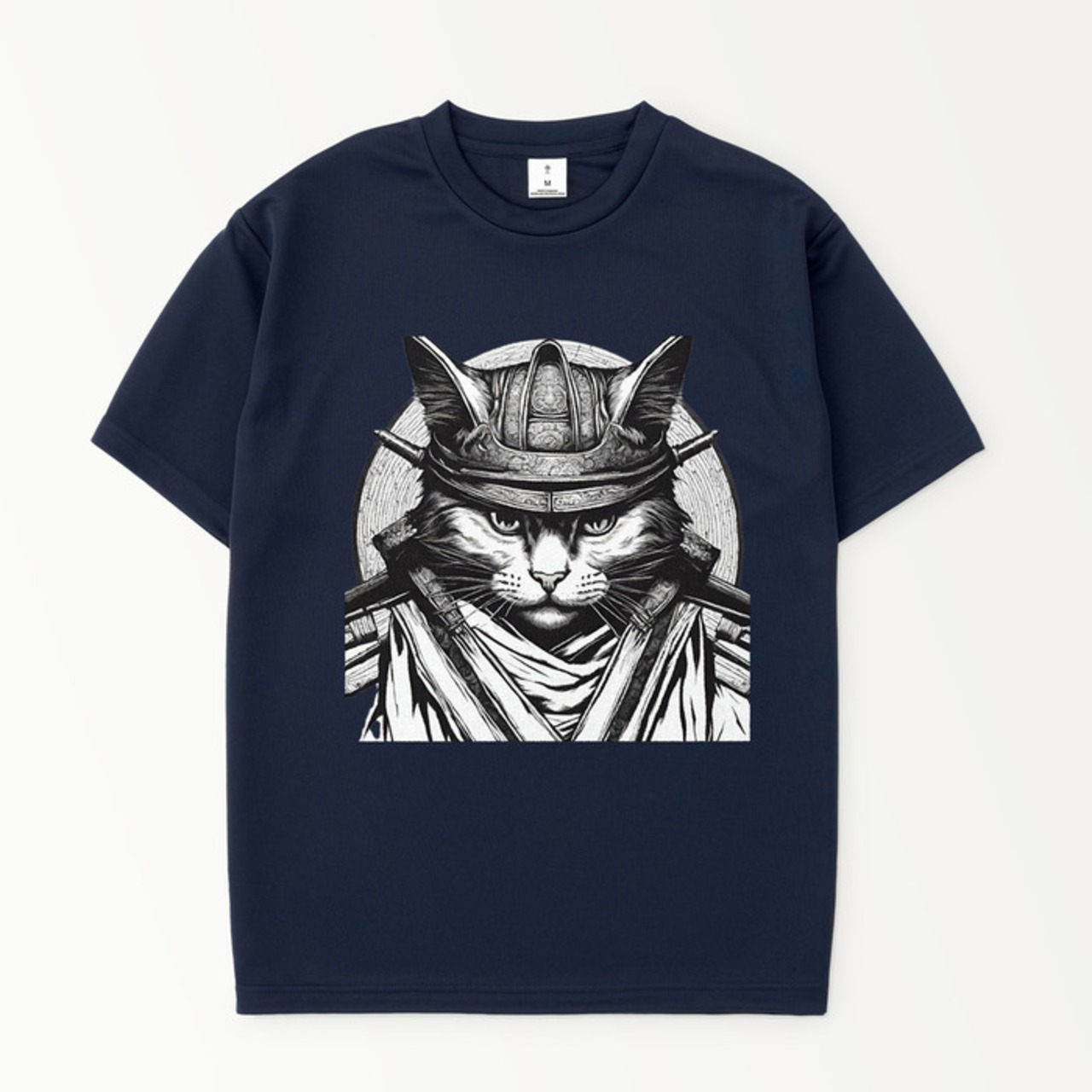 Tシャツ前面の胸元に猫の侍がプリントされております。