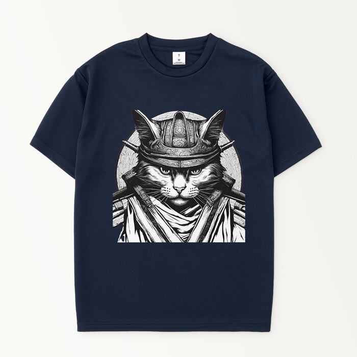 【メンズ】 猫Tシャツ おもしろTシャツ オリジナル猫侍Tシャツ(ネイビー)2 【Men's】 Original Cat Samurai T-shirt (Navy)