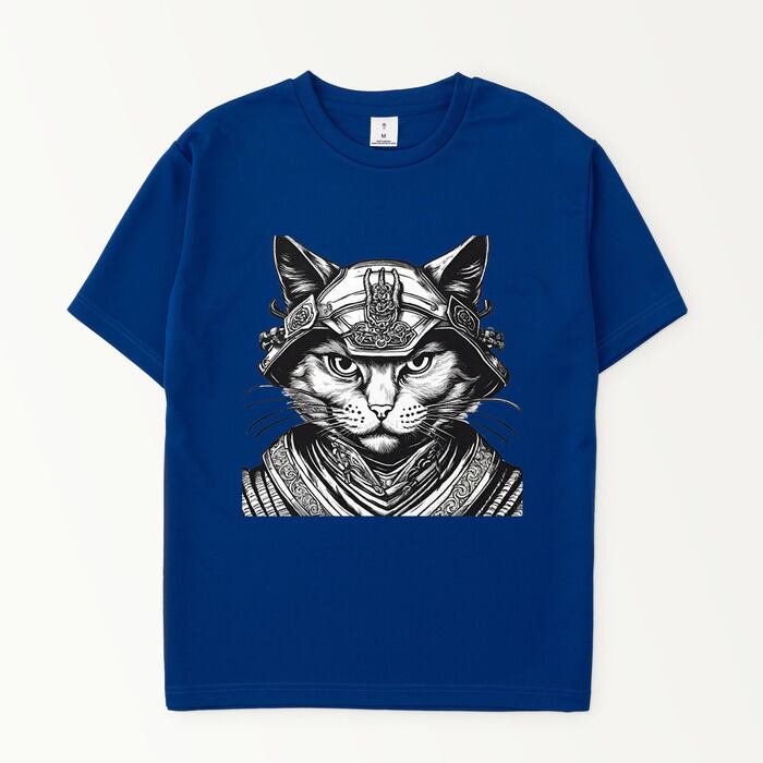 【メンズ】 猫Tシャツ おもしろTシャツ オリジナル猫侍Tシャツ(マリンブルー)4 【Men's】 Original Cat Samurai T-shirt (Marine Blue)
