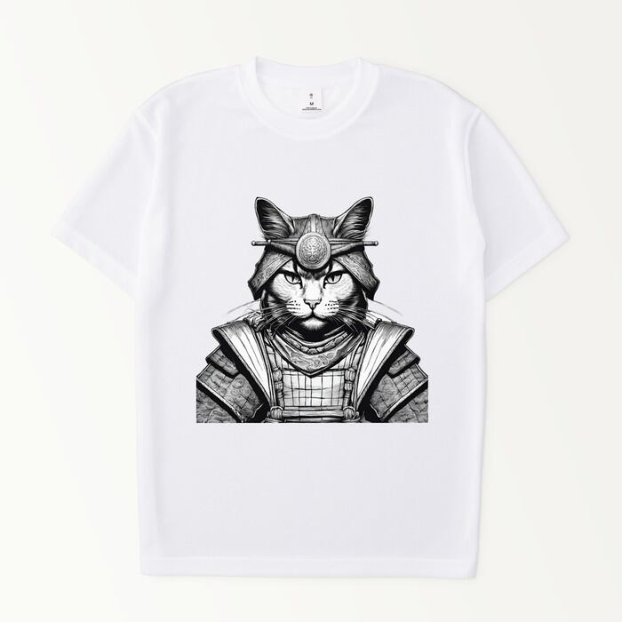 Tシャツ前面の胸元に猫の侍がプリントされております。