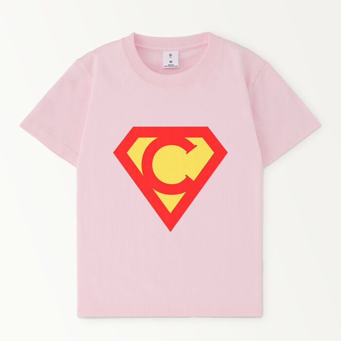 Tシャツ前面の胸元にスーパー〇ンぽい猫マークがプリントされています。