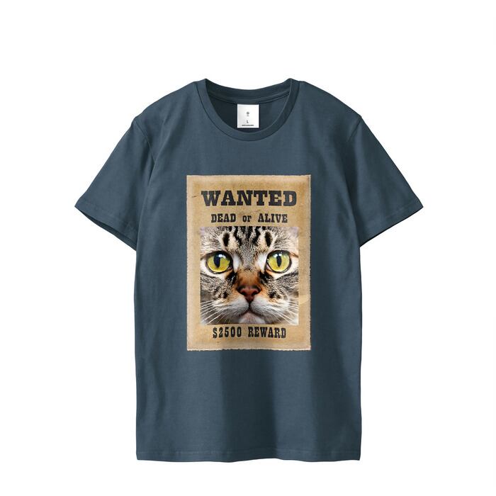 【ユニセックス 猫Tシャツ おもしろTシャツ Neko ManekiオリジナルWanted Cat Tシャツ(ダークブルー) 【Unisex】Neko Maneki Original Wanted Cat T-Shirt(Dark Blue)