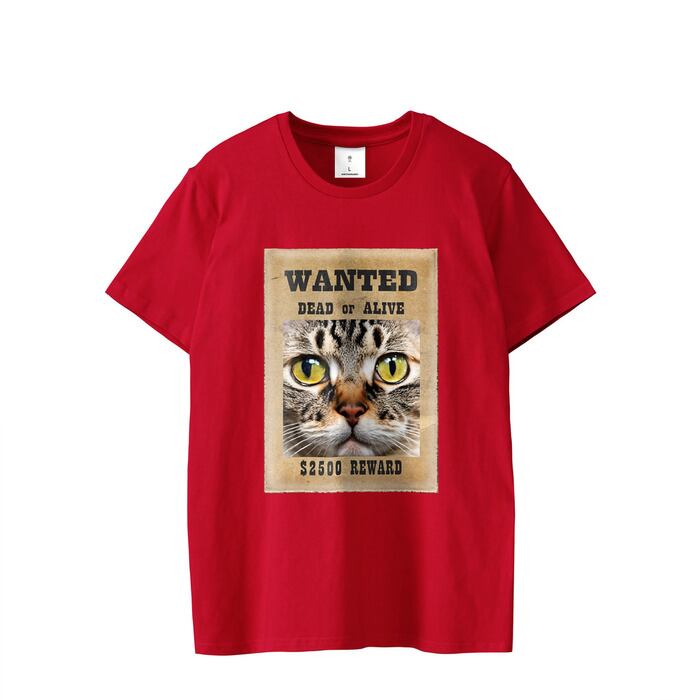 【ユニセックス】 猫Tシャツ おもしろTシャツ Neko ManekiオリジナルWanted Cat Tシャツ(レッド)【Unisex】Neko Maneki Original Wanted Cat T-Shirt(Red)