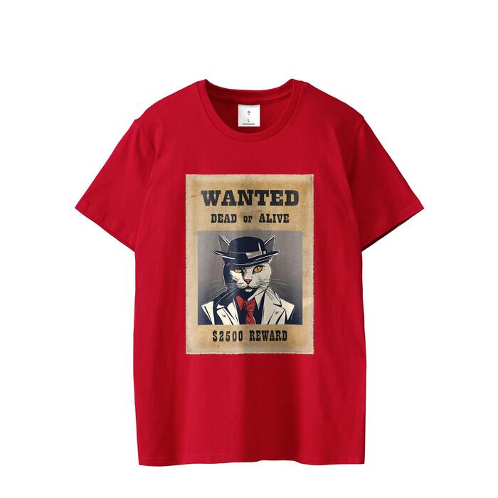 【ユニセックス】 猫Tシャツ おもしろTシャツ Neko Maneki オリジナル Wanted Cat Tシャツ(レッド) 【Unisex】Neko Maneki Original Wanted Cat T-Shirt(Red)