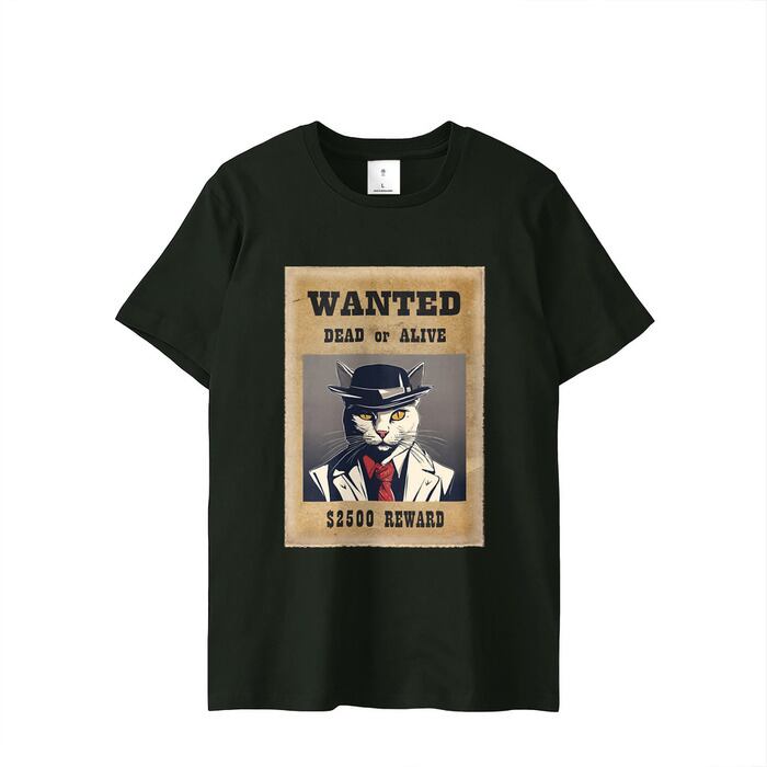【ユニセックス】 猫Tシャツ おもしろTシャツ Neko Maneki オリジナル Wanted Cat Tシャツ(ブラック) 【Unisex】Neko Maneki Original Wanted Cat T-Shirt(Black)