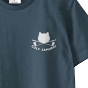 【ユニセックス】 GOLF SAMURAI ロゴTシャツ (ダークブルー) 両面ロゴ 猫Tシャツ 猫グッズ
