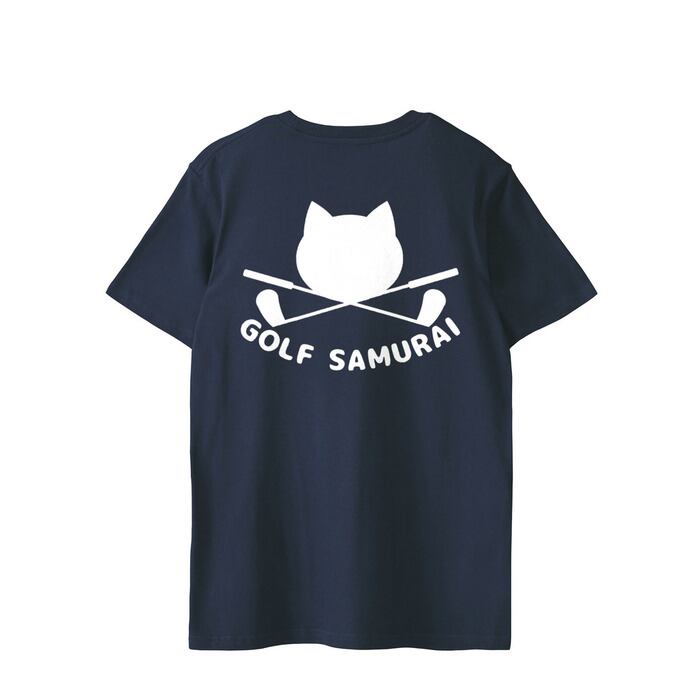 【ユニセックス】 GOLF SAMURAI ロゴTシャツ (ネイビー) 両面ロゴ 猫Tシャツ 猫グッズ