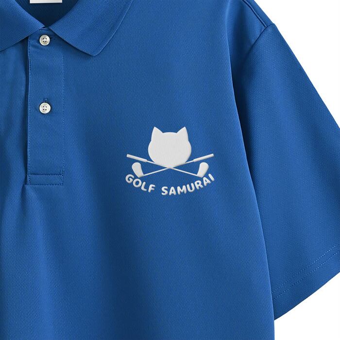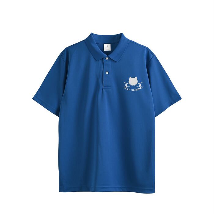 【ユニセックス】 GOLF SAMURAI ロゴポロシャツ (ブルー) 猫Tシャツ 猫グッズ
