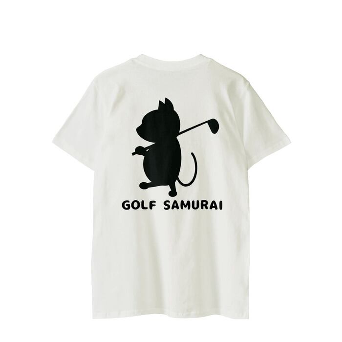 【ユニセックス】 GOLF SAMURAI Tシャツ 前面ロゴ 背面てくてく (ホワイト) 猫Tシャツ 猫グッズ