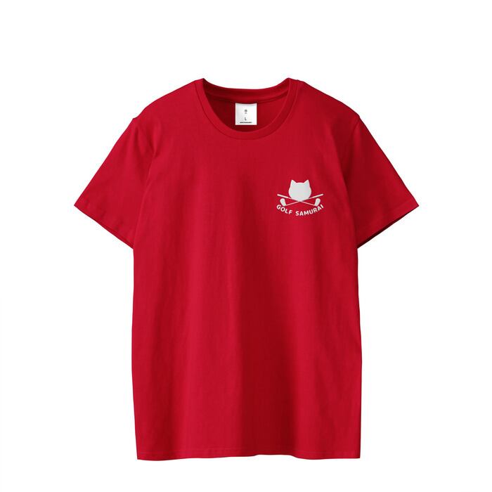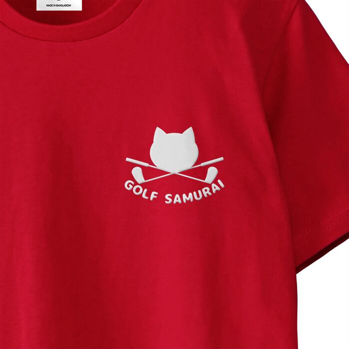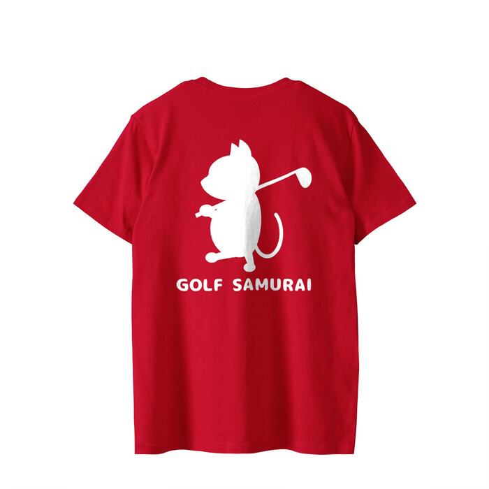 【ユニセックス】 GOLF SAMURAI Tシャツ 前面ロゴ 背面てくてく (レッド) 猫Tシャツ 猫グッズ