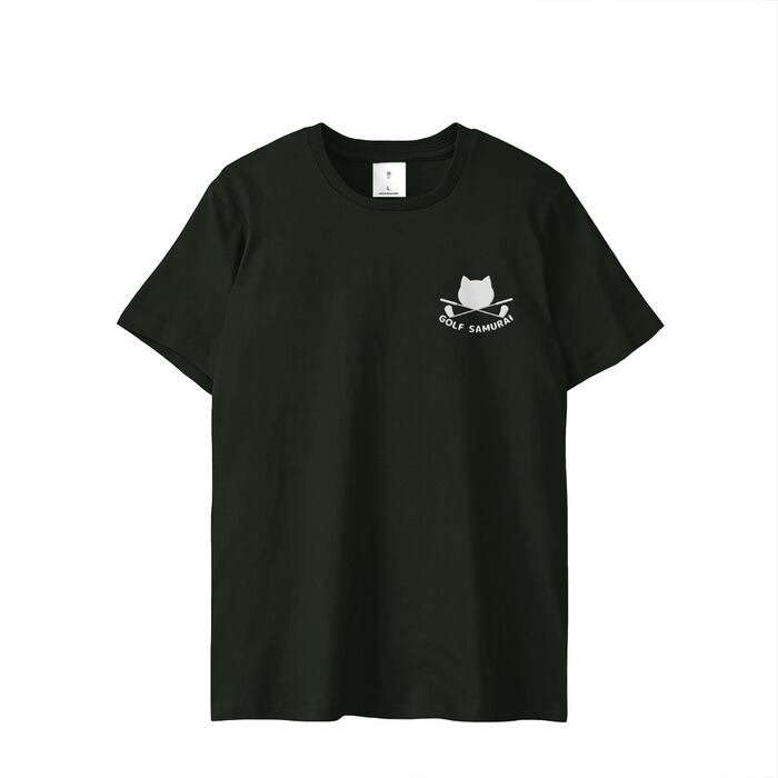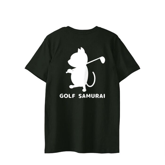 【ユニセックス】 GOLF SAMURAI Tシャツ 前面ロゴ 背面てくてく (ブラック) 猫Tシャツ 猫グッズ