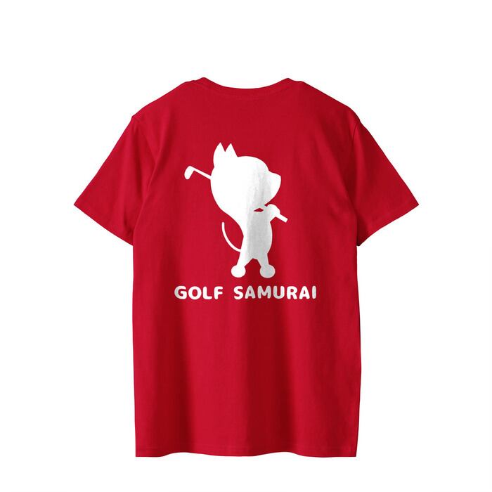 【ユニセックス】 GOLF SAMURAI Tシャツ 前面ロゴ 背面スイング (レッド) 猫Tシャツ 猫グッズ