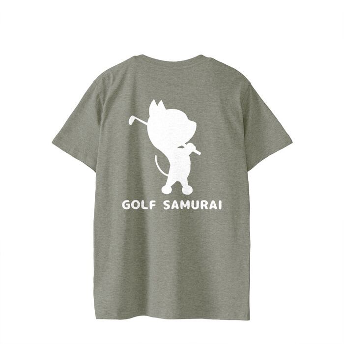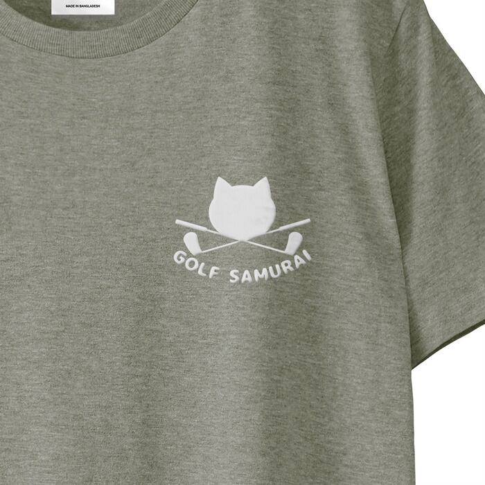 【ユニセックス】 GOLF SAMURAI Tシャツ 前面ロゴ 背面スイング (グレー) 猫Tシャツ 猫グッズ