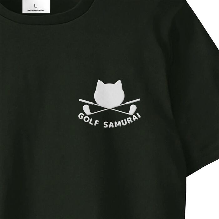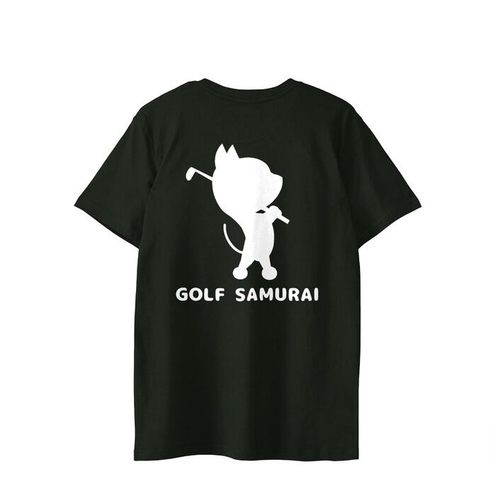 【ユニセックス】 GOLF SAMURAI Tシャツ 前面ロゴ 背面スイング (ブラック) 猫Tシャツ 猫グッズ