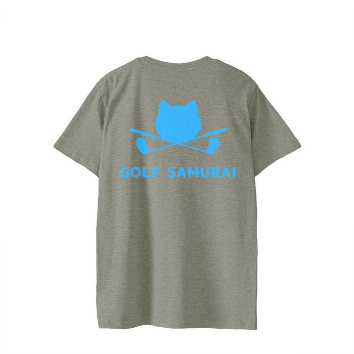 【ユニセックス】 GOLF SAMURAI Tシャツ (生地グレー×文字ライトブルー) 猫Tシャツ 猫グッズ