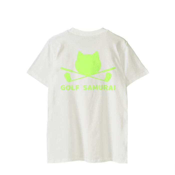 【ユニセックス】 GOLF SAMURAI Tシャツ (生地ホワイト×文字ライム) 猫Tシャツ 猫グッズ